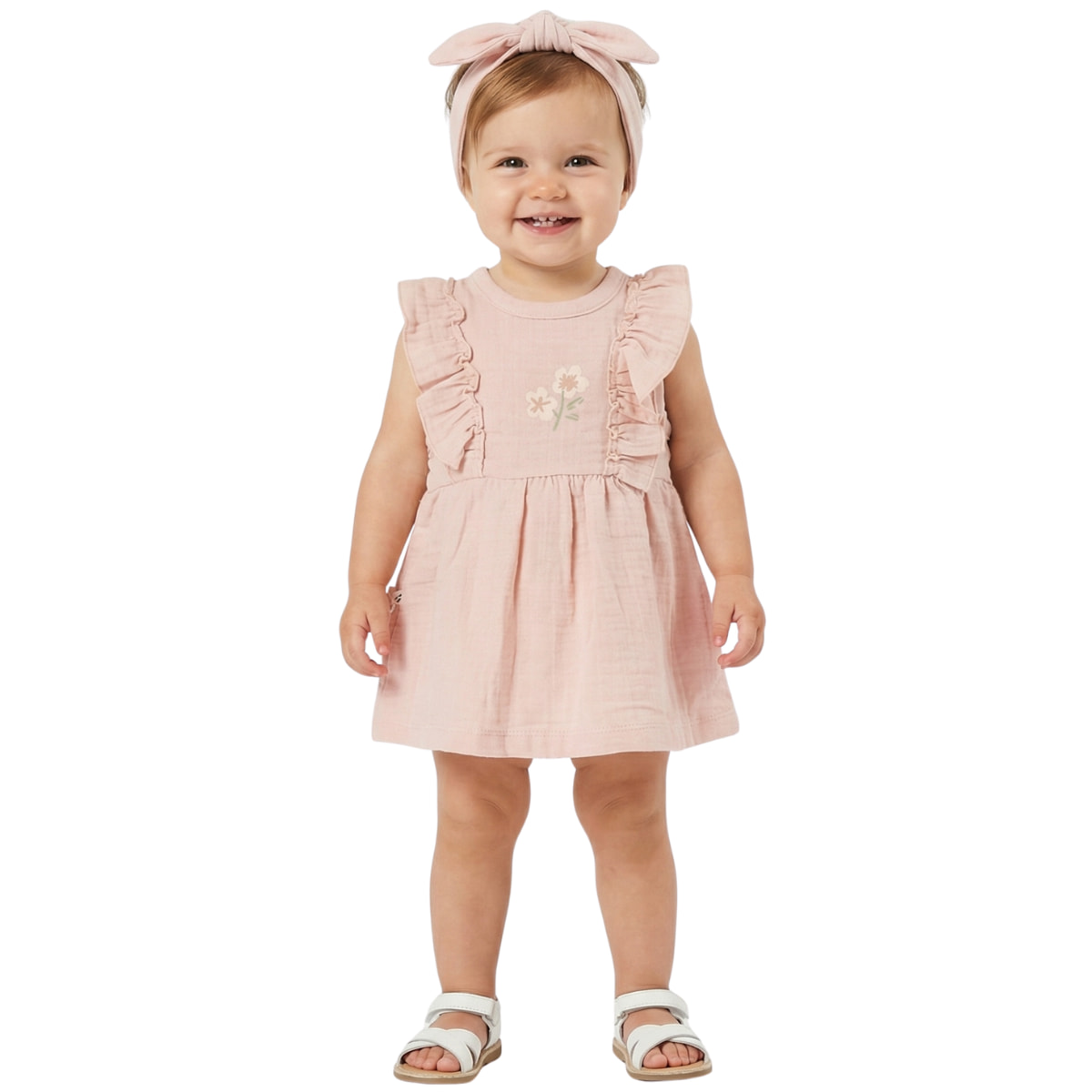 Moi Noi βρεφικό φορεματάκι με κορδέλα για τα μαλλιά «Pink Petals»