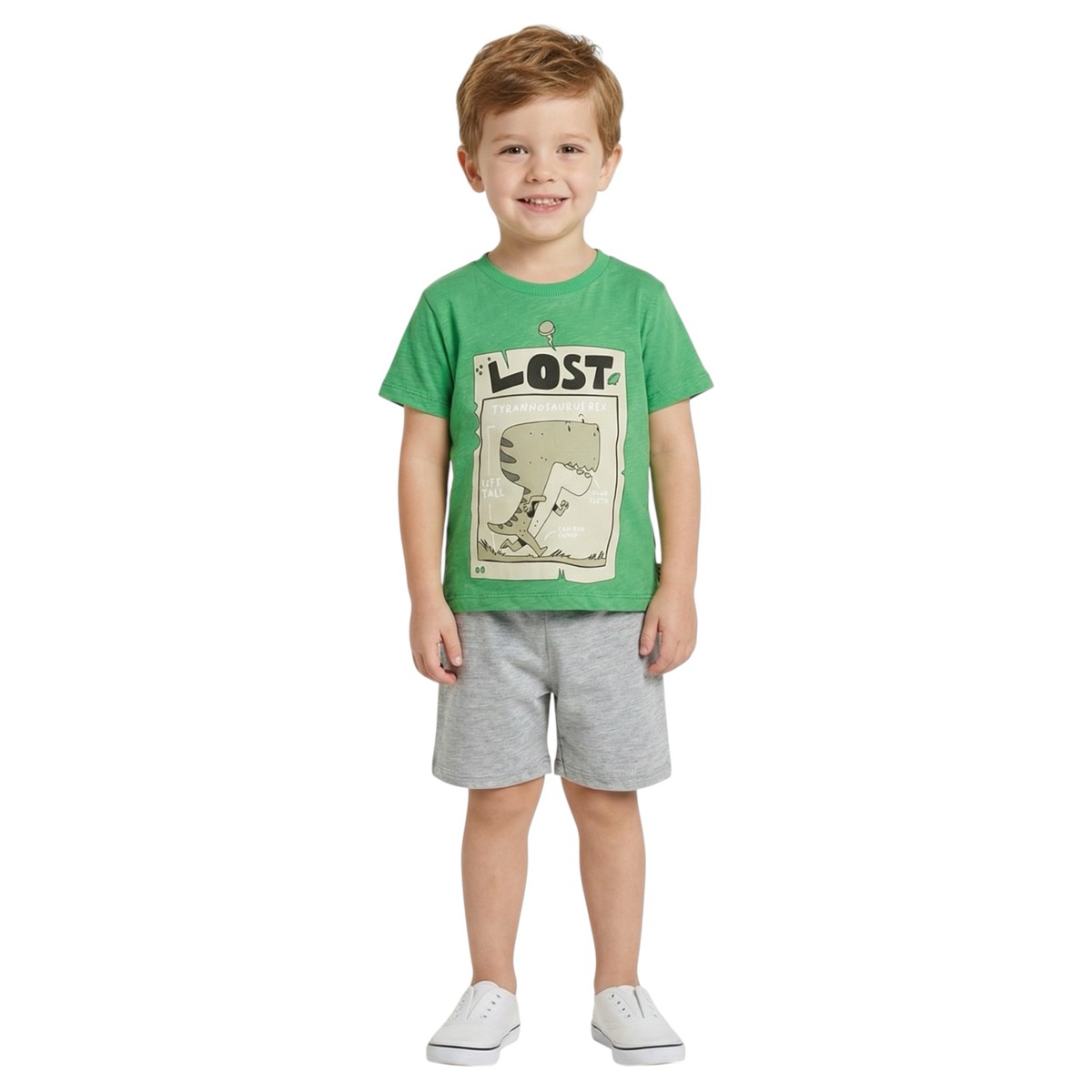 Το καλοκαιρινό σετ Moyes είναι η ιδανική επιλογή για άνετες και στιλάτες εμφανίσεις! Η κοντομάνικη μπλούζα σε ζωηρή πράσινη απόχρωση, με μοντέρνα στάμπα στο μπροστινό μέρος, χαρίζει μοντέρνο ύφος, ενώ το γκρι σορτσάκι με λάστιχο στη μέση προσφέρει τέλεια εφαρμογή και ελευθερία κινήσεων. Κατασκευασμένο από 100% βαμβάκι, είναι απαλό και δροσερό, ιδανικό για τις ζεστές καλοκαιρινές ημέρες. Ένα πρακτικό και ευκολοφόρετο σετ, κατάλληλο για βόλτες, παιχνίδι και καθημερινές δραστηριότητες.