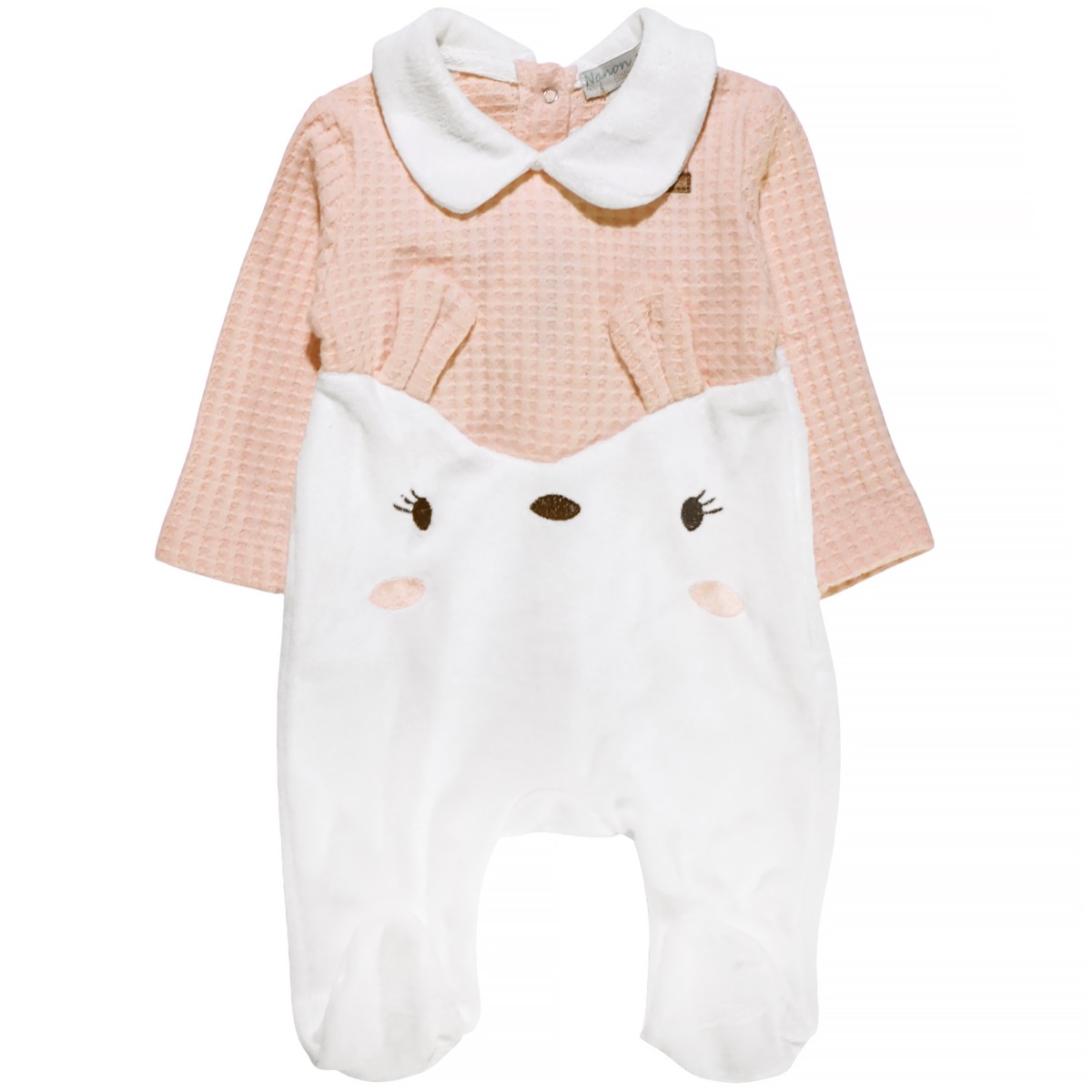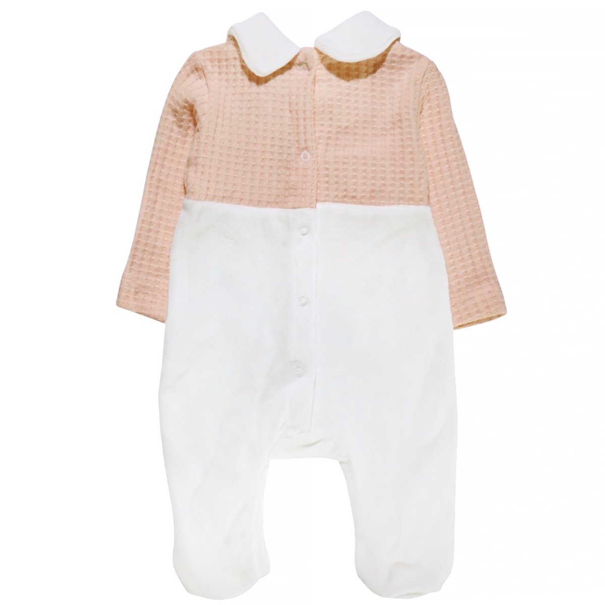 Το ολόσωμο βελουτέ φορμάκι Nanon Baby σε σομόν και λευκό χρώμα είναι η απόλυτη επιλογή για τον χειμώνα. Κατασκευασμένο από βελουτέ βαμβακερό ύφασμα με σύνθεση 100% βαμβάκι, προσφέρει ζεστασιά και άνεση στο μωρό. Τα απλικέ σχέδια και τα κεντήματα στο εμπρός μέρος χαρίζουν χαριτωμένη εμφάνιση, ενώ το άνοιγμα με τρουκς στο πίσω μέρος κάνει το άλλαγμα εύκολο και γρήγορο. Ένα χειμωνιάτικο ρούχο για κοριτσάκια που συνδυάζει στιλ και πρακτικότητα.