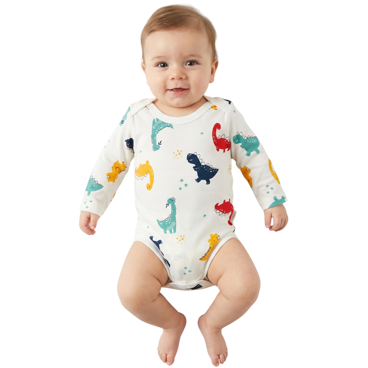 Nayinom μακρυμάνικο βρεφικό κορμάκι «Ecru Dinos»
