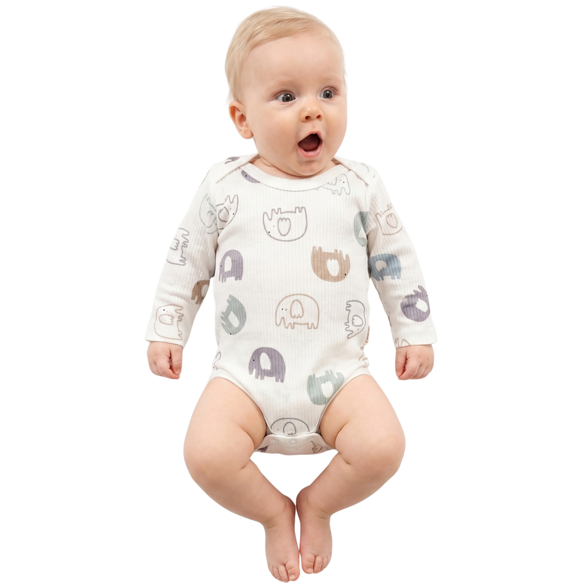 Nayinom μακρυμάνικο βρεφικό κορμάκι «Elephant Fun»