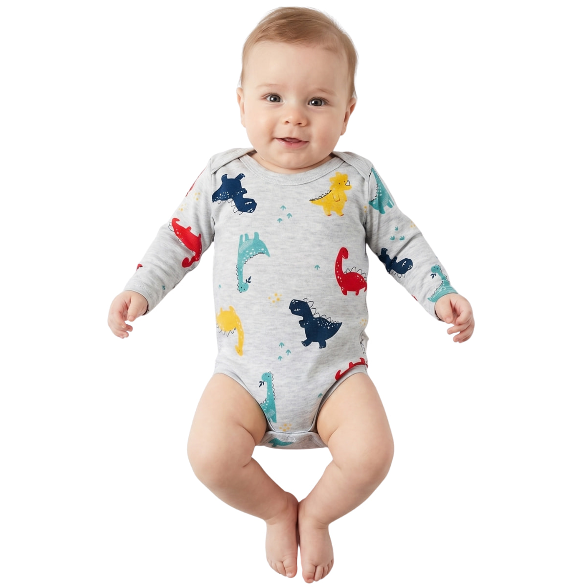 Nayinom μακρυμάνικο βρεφικό κορμάκι «Grey Dinos»