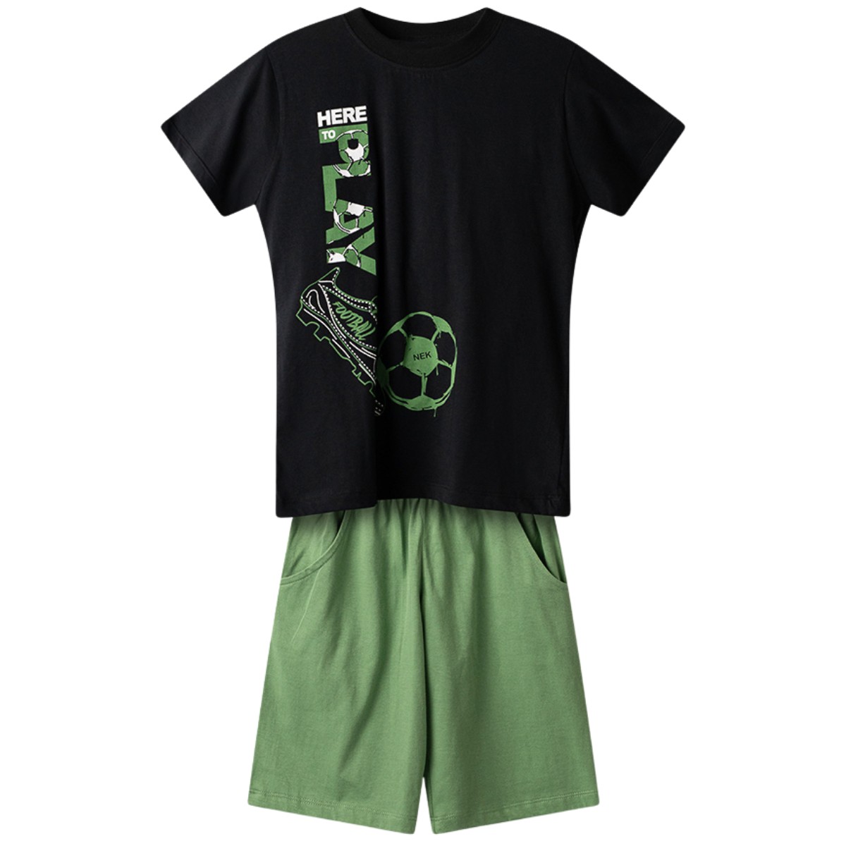 Το σετ από τη Nek είναι μια δυναμική και άνετη επιλογή για τις καλοκαιρινές περιπέτειες των αγοριών σας. Η μαύρη κοντομάνικη μπλούζα με το ξεχωριστό τύπωμα στο μπροστινό μέρος δημιουργεί μια μοντέρνα αντίθεση με την πράσινη βερμούδα, χαρίζοντας μοναδικό στιλ. Η βερμούδα είναι σχεδιασμένη για παιχνίδι, καθώς διαθέτει πρακτικές τσέπες, κορδόνι που δένει μπροστά και λάστιχο περιμετρικά στη μέση για σταθερή εφαρμογή. Κατασκευασμένο αποκλειστικά από 100% βαμβάκι, το σετ προσφέρει τη δροσιά και την απαλότητα που χρειάζεται το παιδικό δέρμα τις ζεστές μέρες, επιτρέποντας στους μικρούς σας να κινούνται με απόλυτη ελευθερία.