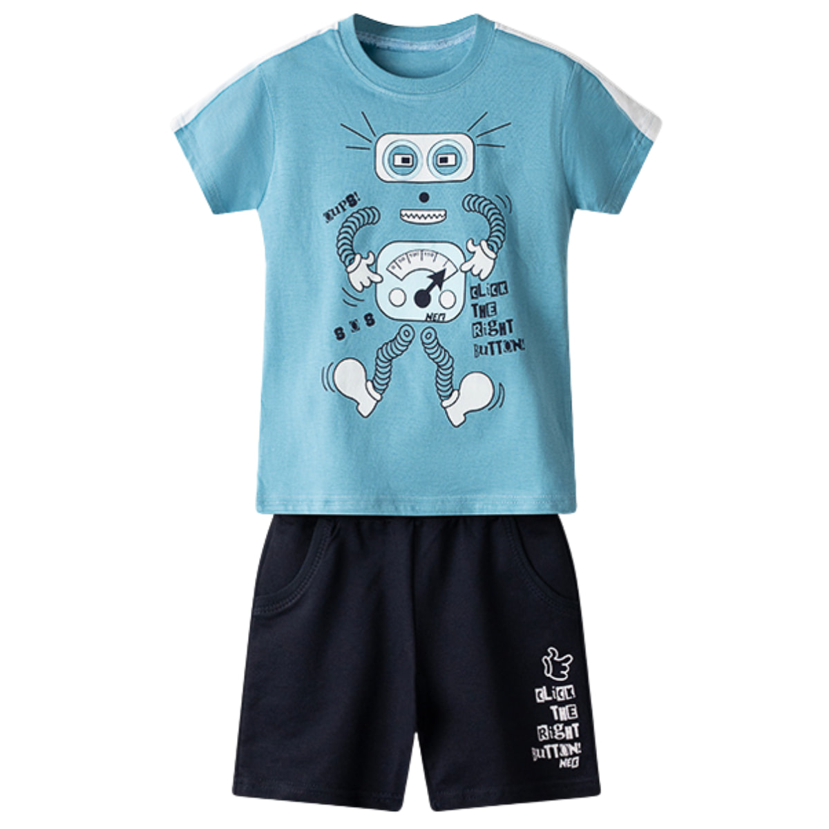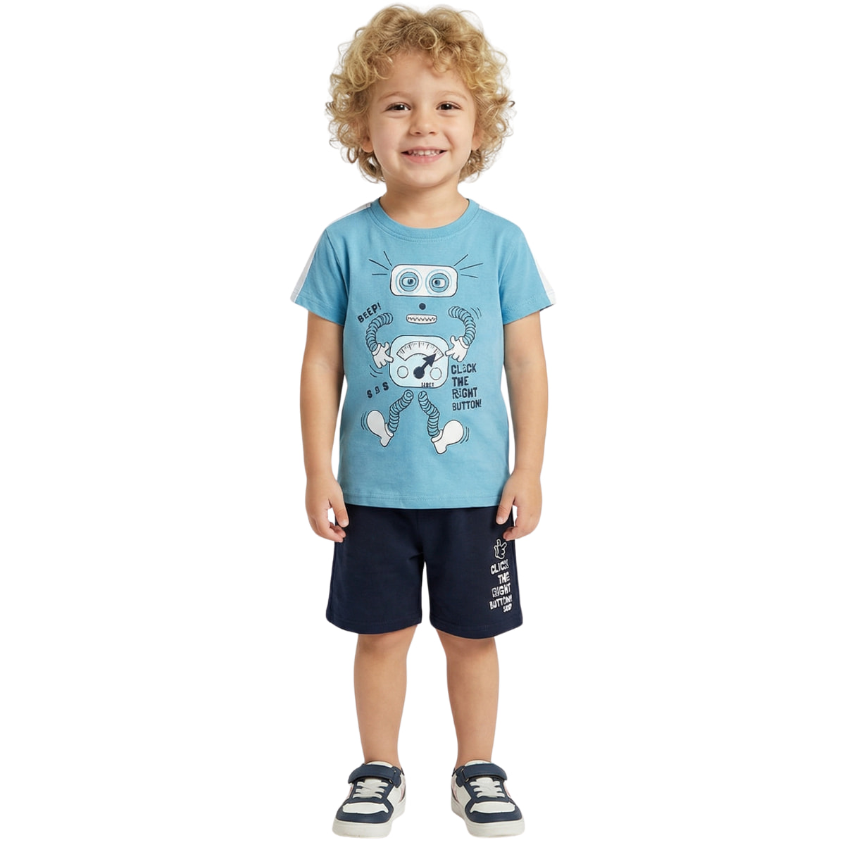 Ετοιμάστε τα αγόρια σας για τις πιο παιχνιδιάρικες καλοκαιρινές βόλτες με αυτό το πανέμορφο σετ από τη Nek. Η γαλάζια κοντομάνικη μπλούζα τραβάει αμέσως την προσοχή χάρη στο τύπωμα με το ρομπότ στο μπροστινό μέρος, δημιουργώντας μια πολύ χαρούμενη εικόνα στην εμφάνισή τους. Το ντύσιμο ολοκληρώνεται τέλεια με το μπλε σορτσάκι, το οποίο σχεδιάστηκε με ένα μαλακό λάστιχο περιμετρικά στη μέση. Με αυτόν τον τρόπο εφαρμόζει σωστά και παραμένει σταθερό, χωρίς να τα πιέζει ποτέ την ώρα που τρέχουν και ανακαλύπτουν τον κόσμο. Επειδή η εποχή απαιτεί την πιο απαλή επαφή, τα ρούχα είναι ραμμένα αποκλειστικά από 100% βαμβάκι. Αυτή η φυσική σύνθεση δροσίζει και φροντίζει το ευαίσθητο δερματάκι τους, χαρίζοντας στους μικρούς σας ένα πραγματικά στιλάτο και χαλαρό αποτέλεσμα για τις διακοπές και την παιδική χαρά.