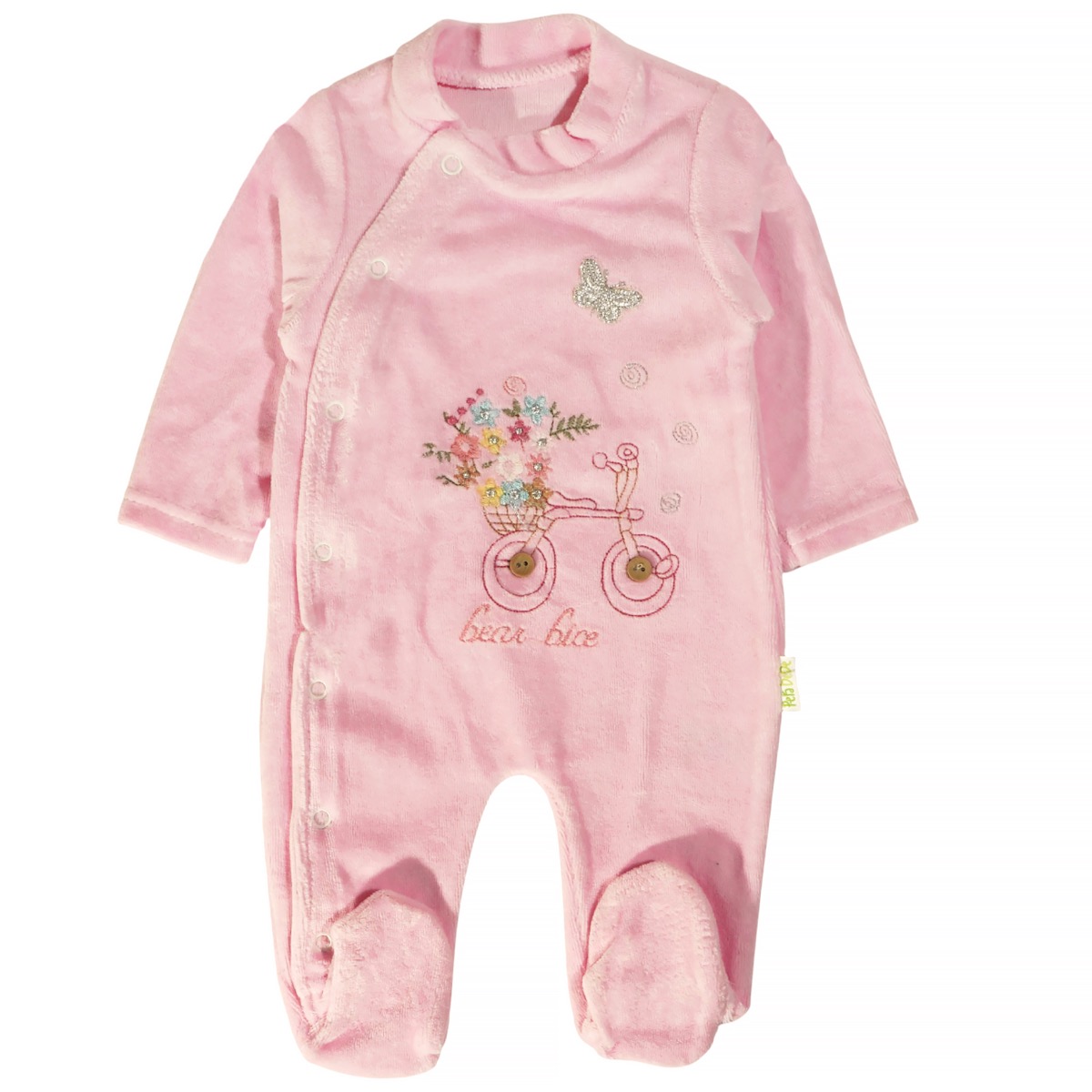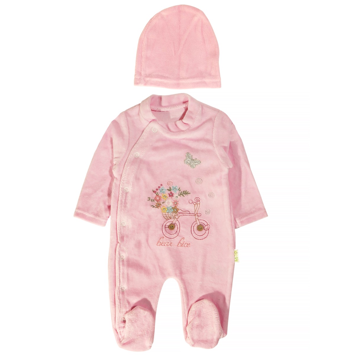 Το ολόσωμο βελουτέ φορμάκι με σκουφάκι Pera Bebe σε ροζ χρώμα προσφέρει τη μέγιστη ζεστασιά για τις κρύες μέρες του χειμώνα. Κατασκευασμένο από βελουτέ βαμβακερό ύφασμα με σύνθεση 80% βαμβάκι και 20% πολυεστέρα, εξασφαλίζει άνεση και απαλότητα στο μωρό. Τα απλικέ σχέδια στο εμπρός μέρος χαρίζουν χαριτωμένη εμφάνιση, ενώ το πρακτικό άνοιγμα με τρουκς στο πλάι, από τον λαιμό έως κάτω, διευκολύνει το άλλαγμα. Το ασορτί σκουφάκι που το συνοδεύει ολοκληρώνει το σετ και προστατεύει το κεφαλάκι από το κρύο. Ένα χειμωνιάτικο ρούχο για κοριτσάκια που συνδυάζει πρακτικότητα και στιλ, ιδανικό για καθημερινή χρήση.