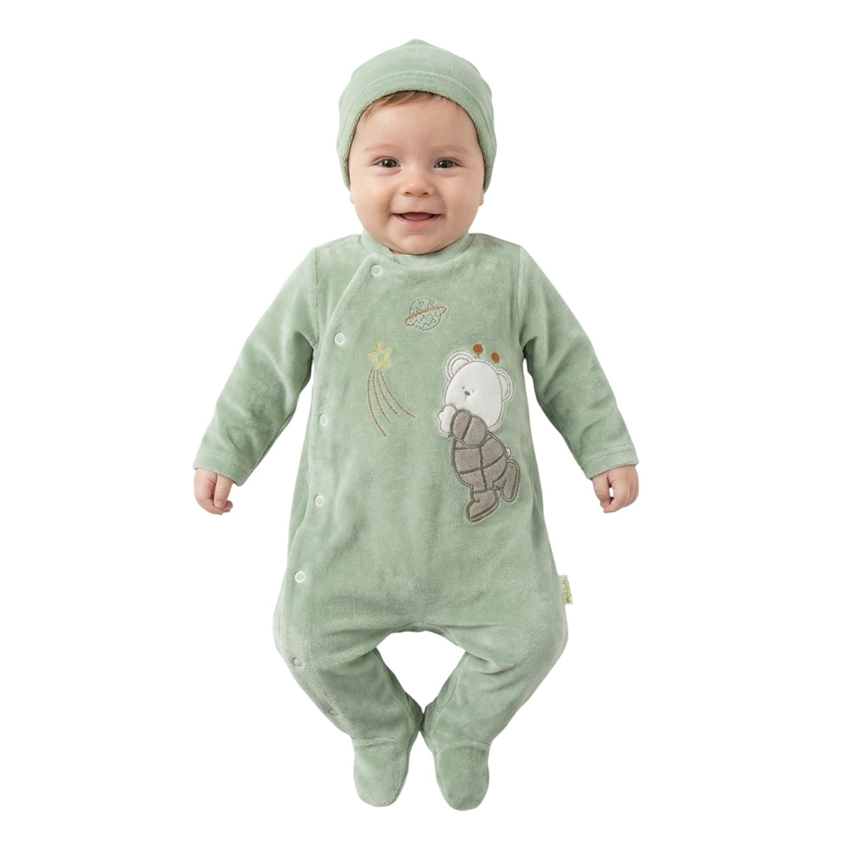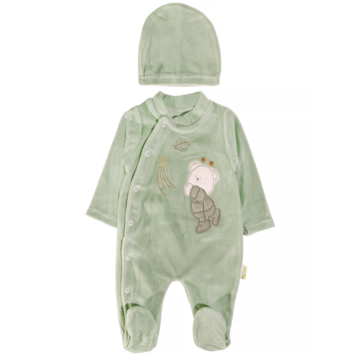 Pera Bebe ολόσωμο βελουτέ φορμάκι με σκουφάκι «Space Veraman Teddy»