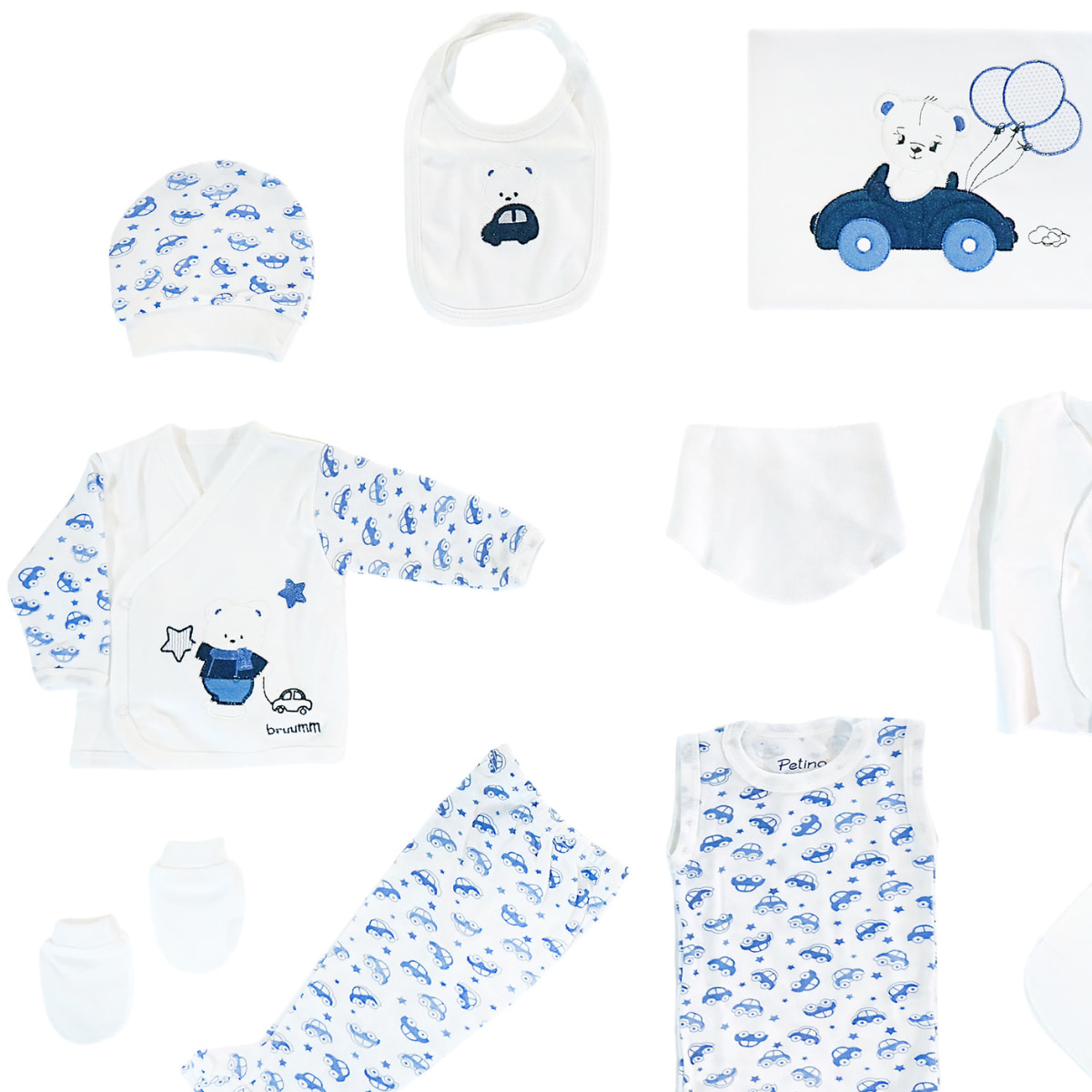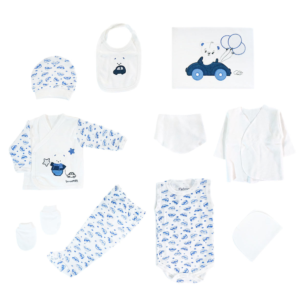 Petino σετ δώρου για νεογέννητα δέκα τεμαχίων από λεπτό ύφασμα «First Road Trip»