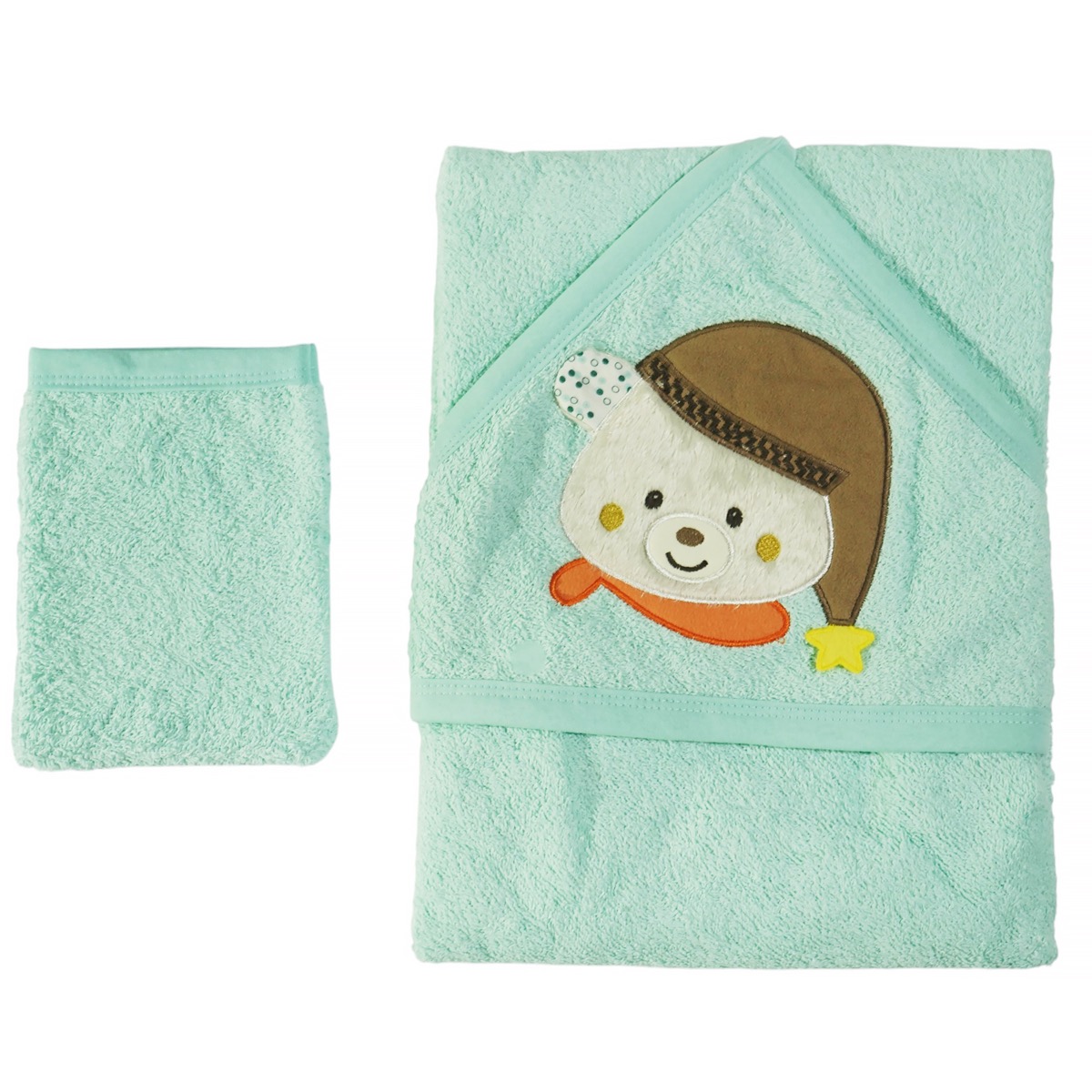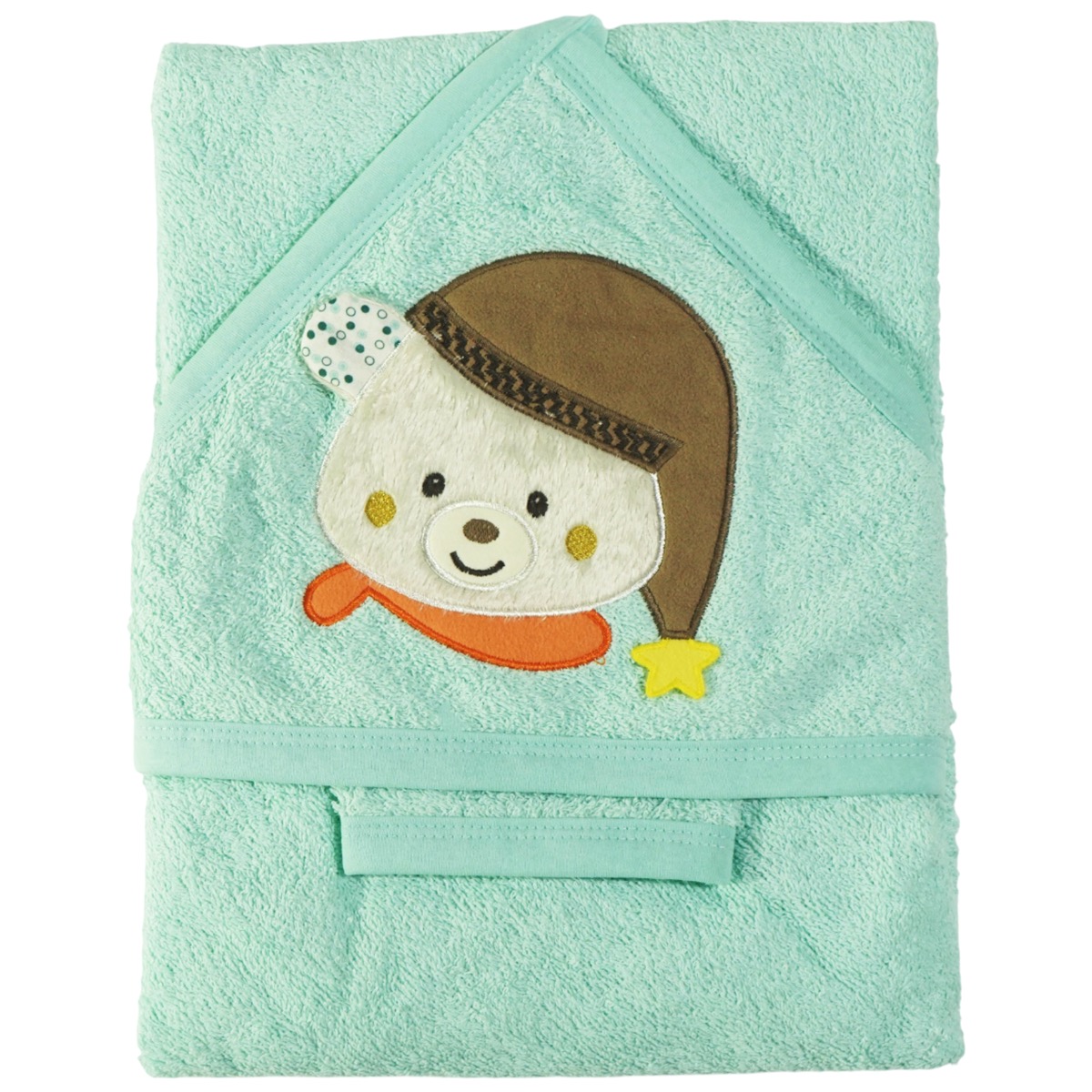 Μετά το μπάνιο, το μωρό σας θα νιώσει απόλυτα προστατευμένο με τη μπουρνουζοπετσέτα της Ramel σε βεραμάν χρώμα. Κατασκευασμένη από 90% βαμβάκι και 10% πολυεστέρα, εξασφαλίζει την απαλότητα που χρειάζεται η ευαίσθητη βρεφική επιδερμίδα. Η κουκούλα με το χαριτωμένο απλικέ αρκουδάκι κρατά το κεφαλάκι ζεστό και στεγνό, ενώ το συνοδευτικό γαντάκι μπάνιου προσφέρει επιπλέον πρακτικότητα. Ιδανική για τον χειμώνα, αποτελεί απαραίτητο αξεσουάρ για κάθε αγοράκι που χρειάζεται ζεστασιά και άνεση μετά το καθημερινό του μπάνιο.