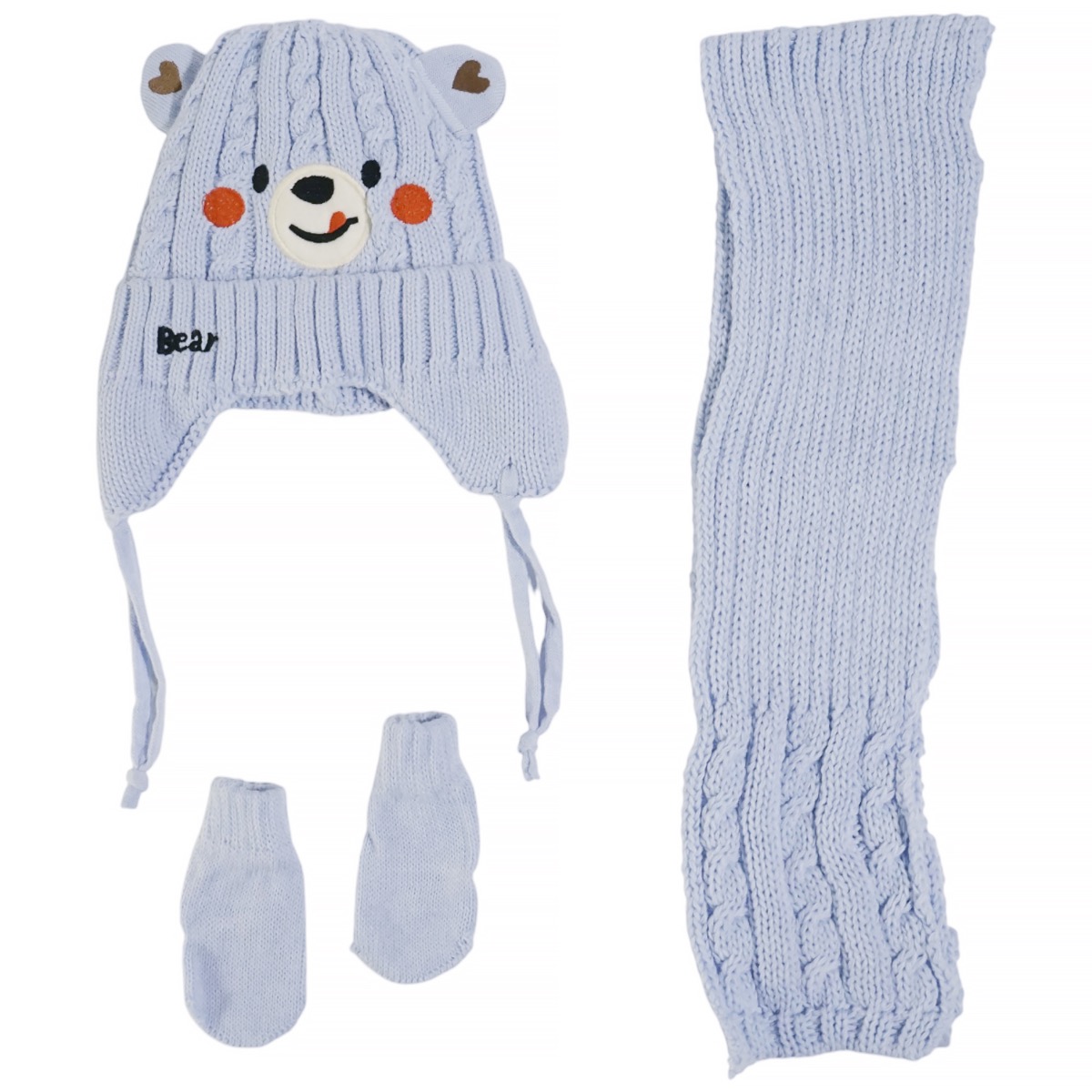 Recos πλεκτό σετ σκούφος-κασκόλ-γάντια «Light Blue Boy»