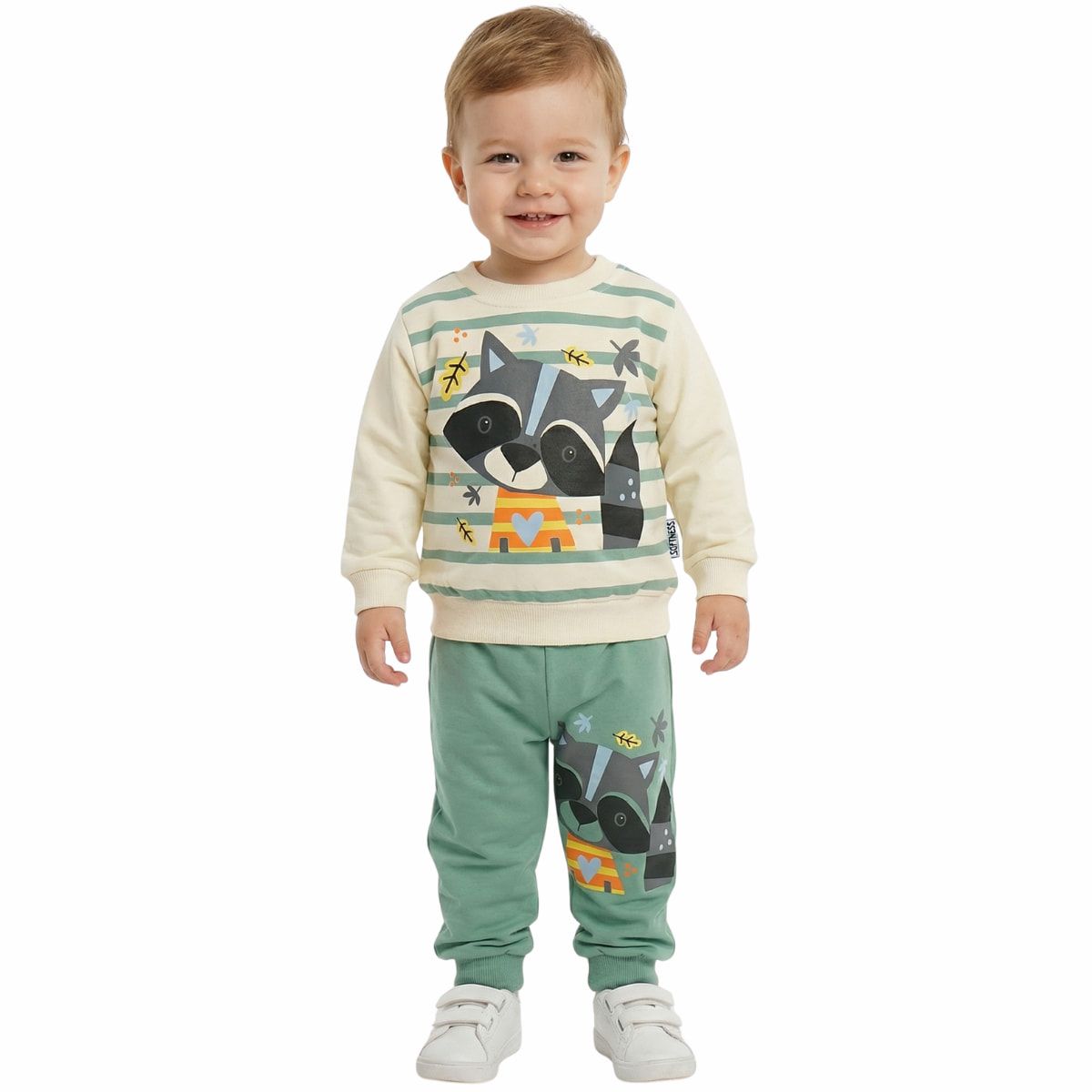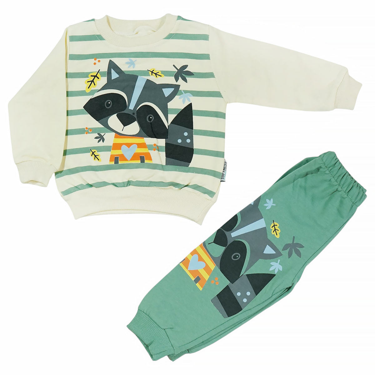 Softness Baby βρεφικό σετ φόρμας από λεπτό ύφασμα «Green Raccoon»