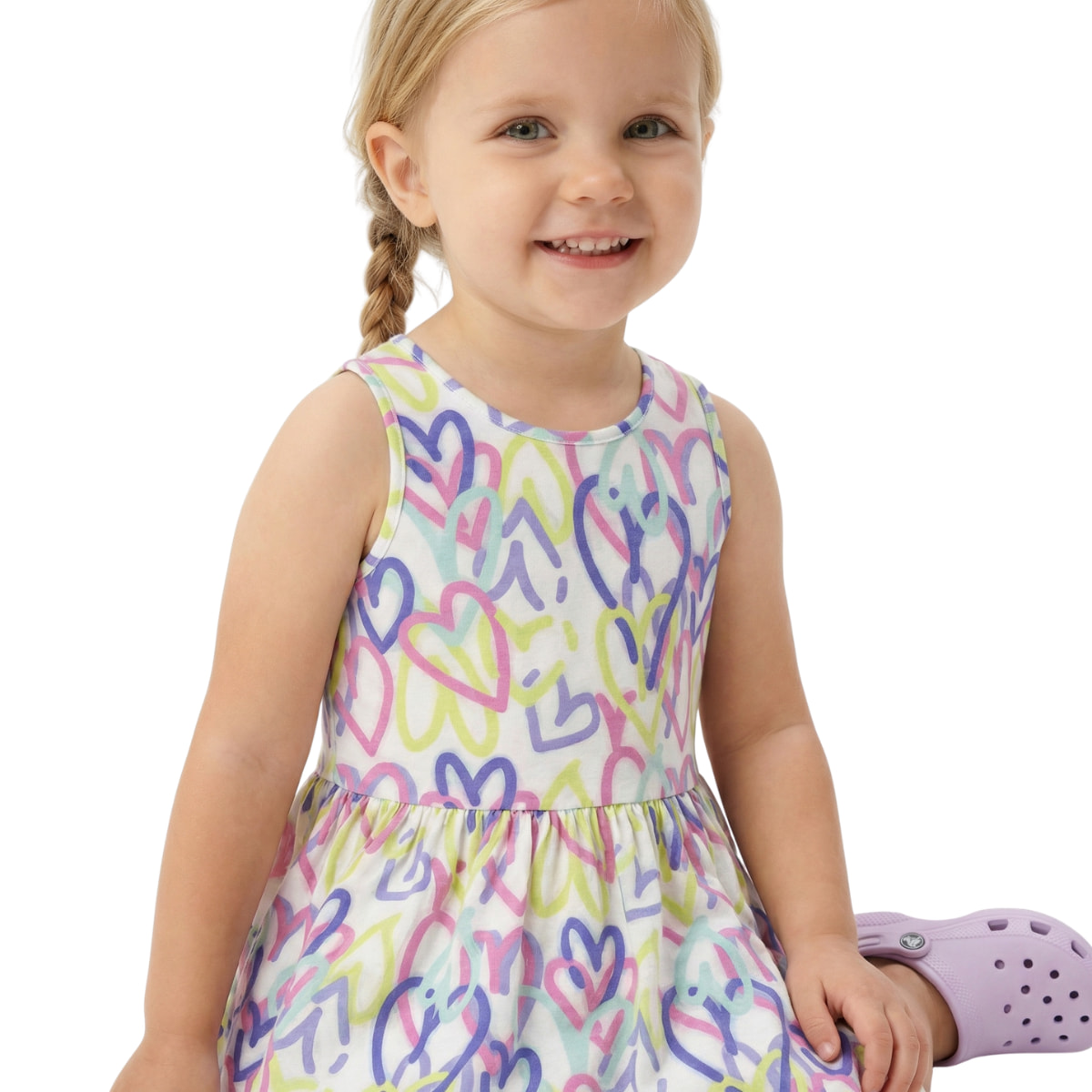 Γεμίστε με χρώμα και αγάπη τις καλοκαιρινές βόλτες που κάνουν τα κοριτσάκια σας με αυτό το πανέμορφο μακό αμάνικο φόρεμα από τη Trax. Το υπέροχο, πολύχρωμο σχέδιο με τις καρδούλες χαρίζει μια εξαιρετικά γλυκιά και παιχνιδιάρικη εικόνα στην εμφάνισή τους, κλέβοντας κατευθείαν τις εντυπώσεις. Ο σχεδιασμός του διαθέτει ένα μαλακό λάστιχο περιμετρικά στη μέση, ώστε να αγκαλιάζει σωστά το σωματάκι τους και να παραμένει σταθερό, χωρίς να στενεύει τις μικρές σας την ώρα που τρέχουν ή κάνουν κούνια. Επειδή η εποχή απαιτεί την πιο απαλή επαφή, είναι ραμμένο με πολλή φροντίδα από 95% βαμβάκι και 5% ελαστάνη. Αυτή η εξαιρετική σύνθεση δροσίζει και φροντίζει το ευαίσθητο δερματάκι τους, επιτρέποντάς τους να διασκεδάζουν με απόλυτη ελευθερία, και δημιουργώντας ένα πραγματικά στιλάτο και χαριτωμένο αποτέλεσμα για τις διακοπές και το πάρκο.